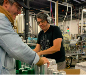 個人的なオススメは、地元フリーペーパーで表紙を飾った経歴もあるBrouwerij West(ブリューリウェスト)。アメリカ最大級の港、ロングビーチ港を目の前に有するサンペドロエリアにある。思い起こすとサンディエゴに多くのブリュワリーができていた頃、その多くが「ビジネスパーク」と呼ばれる異業種のオフィスが連なる平屋のような場所に位置していたが、ここでもその雰囲気を感じた。ただ、大きく違う点は、ロケーションが「ビジネスパーク」ではなく「クラフトエリア」とも言えるような「手作り感」が立ち並ぶエリアであること。向かい側は大きな商業展示スペースとパーティーが可能な広い建物があり、商業スペースは小さく区切られたそれぞれのコマに、手芸作品や手製のジャムや蜂蜜、さらには芸術的な写真やビーチで収集された流木を使ったアート作品の展示即売までさまざまなジャンルの「クラフト」に出会える。そんな一区画に位置するクラフトブリュワリー。平日は会社帰りの若いビジネスマンたち、週末ともなるとロゴの入ったグラウラー(詰め替え容器)を持った比較的若い年齢層が多い。ブリュワリーのタップハンドルはレゴブロックで作るというどこまでも「クラフト」感があふれるこのブリュワリーは、ベリーや柑橘類のフルーツを使ったアメリカンベルジャンのスタイルを得意とし、少量ながら缶商品も生産。まもなく1周年を迎えるというこれからが楽しみなブリュワリー。